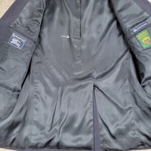 Vintage Burberrys Tuxedo Mens Blue Micro Herringbone Wool 3 Button Formal Suit