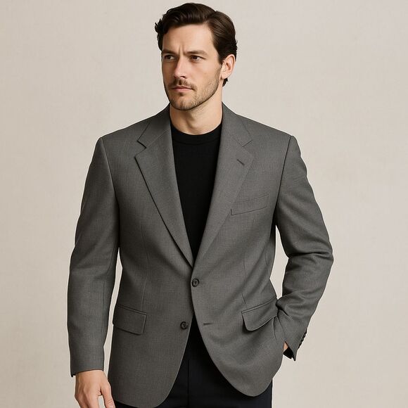 Classic two-button blazer in a gray micro-check wool. This is an authentic vintage Burberrys tailoring piece, produced for the Rochester Big & Tall line. Fully lined, timeless fit, and premium construction. A great business, formal, or quiet-luxury style essential.