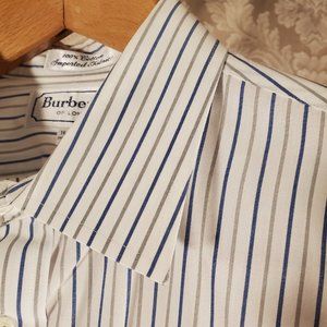Vintage Burberrys of London Men's Grey & Blue Pinstripe French Cuff Dress Shirt