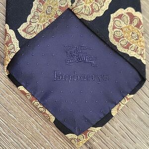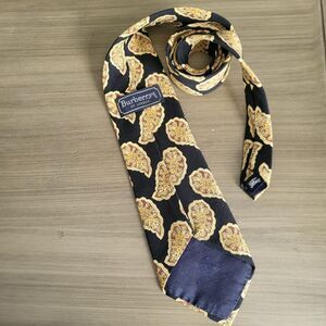 Vintage Burberrys of London Paisley Taupe Brown Black Silk Tie 58'