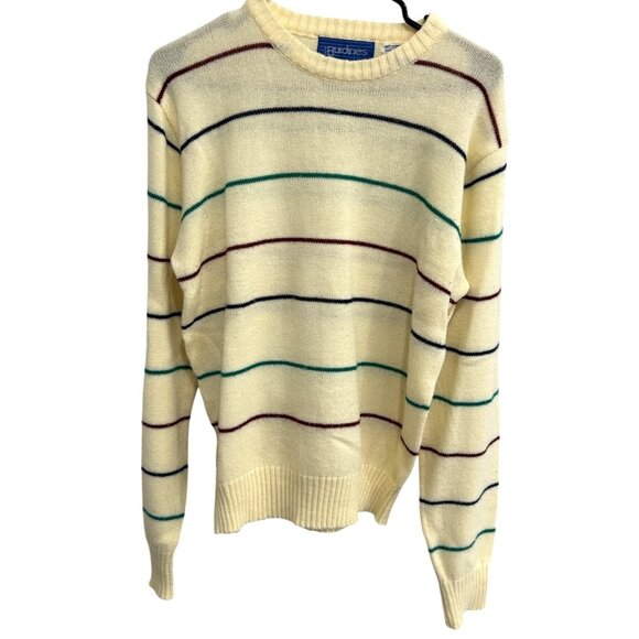 Vintage Burdines Yellow Striped Knit Sweater Crewneck Long Sleeve Sz M