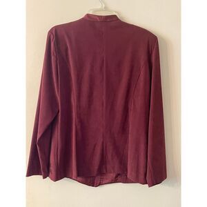 VINTAGE. Elevate your wardrobe with this stunning burgundy skirt suit set. The jacket features exquisite floral embroidery and stylish button closures, while the matching skirt offers a sleek, sophisticated silhouette. Crafted from high-quality fabric, this ensemble exudes elegance and is ideal for formal events or professional settings. The rich burgundy color adds a touch of luxury to this timeless two-piece suit.