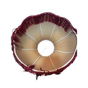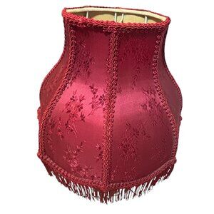 Vintage Burgundy Fabric Bell Shape Lampshade With Floral Pattern & Fringe Detail