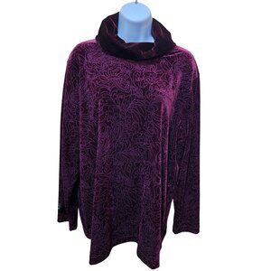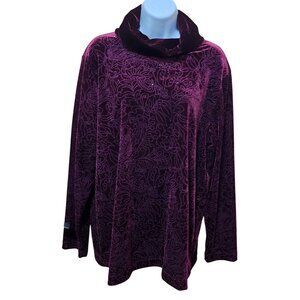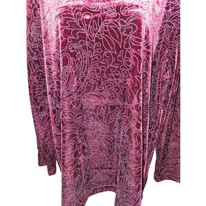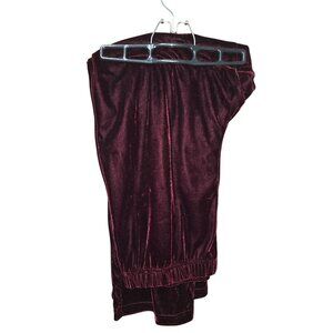 Vintage Burgundy Floral Velvet 2 pc set Turtleneck Lg Sleeve Top Matching Pants