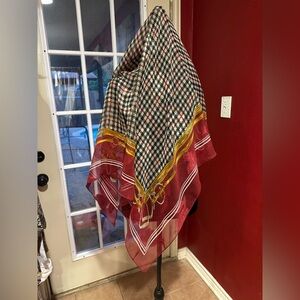 Vintage Burgundy Plaid Equestrian Print Scarf 39” Square Polyester Shawl Wrap