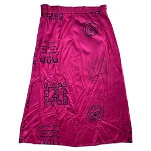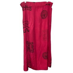 Vintage Burgundy Red Boho Tribal Print Button Maxi Skirt sz L