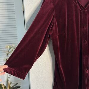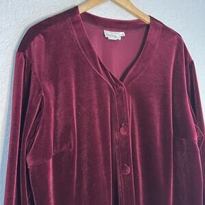 Vintage Burgundy Velvet Long Sleeve Top Fabric Buttons Goth Dark Fall Size 2X