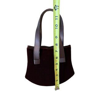 This vintage burgundy velvet serpentine scalloped edge bag from the 1980s is a stylish and unique accessory perfect for adding a touch of elegance to any outfit. The rich red color and luxurious velvet material give it a sophisticated and timeless appeal. The serpentine pattern and scalloped edge details add a trendy and playful touch, making it a versatile piece that can be dressed up or down for any occasion. Perfect for the fashion-forward individual looking to make a statement with their accessories.