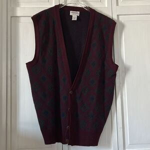 Vintage Burgundy and Green Diamond Knit Vest Size L