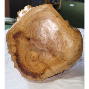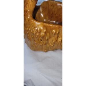 Vintage Burl Wood Handmade Wooden Basket with Handle. Measures 7"W x 8"H x 3"D. This is a gorgeous lighter colored wooden basket with the only imperfections being from the actual wood itself.