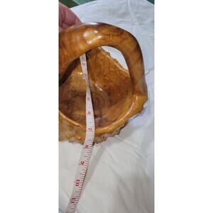 Vintage Burl Wood Handmade Handle Decorative Trinket Handle Basket 7"Wx8"Hx3"D