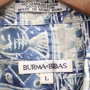 Vintage Burma Bibas Hawaiian Shirt Mens Blue Button Down Fishes Pattern Large L