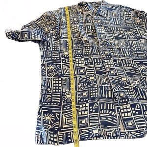 Vintage Burma Bibas Men’s Size Large Blue/White Tribal Print 100% Silk Shirt