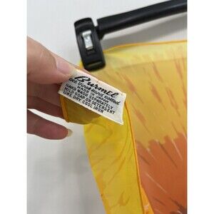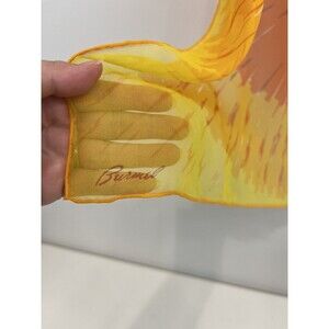 Add a pop of color to your outfit with this vintage Burmel scarf in a bright yellow sunflower print. The sheer square scarf is hand rolled and made from vinal material, originating from Japan in the 1950s. Its mid century modern look makes it a perfect addition to any retro outfit. This original piece is in great condition and will add a touch of vintage charm to any wardrobe. 22 square
