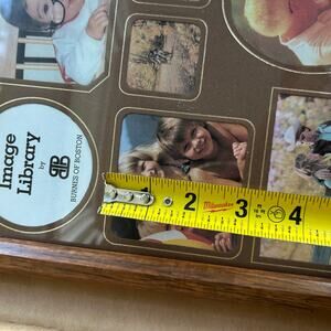 Vintage Burnes of Boston “The Image Library” multi-photo collage frame, brand new in the original box. This piece features a warm medium-oak wood frame and a classic brown mat with multiple openings for photos ranging from approximately 2 inches to 4 inches. Perfect for displaying family photos, retro snapshots, or used as wall décor in a vintage-inspired home.