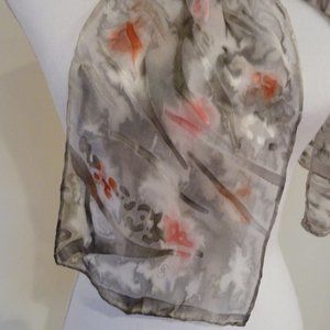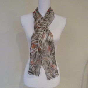 Beautiful Vintage Scarf 1980's, Gray/White/Pink Burnout, Hand Rolled Hem. Excellent. Silk. No Tag. 51" x 7"