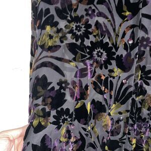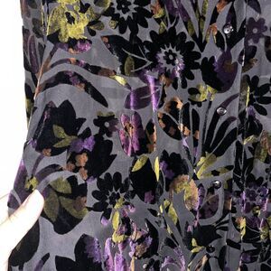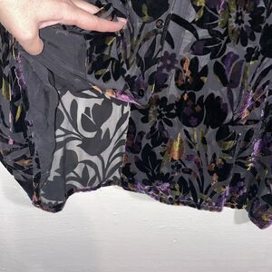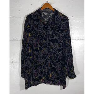 Vintage Burnout Velvet Blouse Button Down Black Purple Green Floral Size XL Y2K