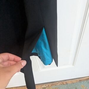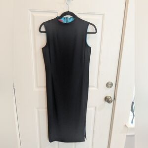 This elegant black sleeveless dress is perfect for any occasion. Its sleek design offers a timeless look that is both stylish and versatile. Beautiful peekaboo turquoise lining.