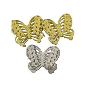 Vintage Burwood Butterfly Wall Decor Set Of 3 Yellow & White Plastic Scroll Desi