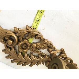 Vintage Set of 2 HOLLYWOOD REGENCY BURWOOD Rococo Hard Plastic CANDLE HOLDER Sconce GOLD TONE