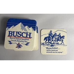 25 Vintage 80s Busch Beer Coasters with scene of Horses and cowboys on the back Vintage barware western