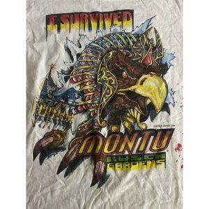 Vintage Busch Gardens Montu T Shirt Large 1996 Extremely Rare Eagle Claw Rib Rip