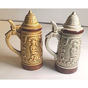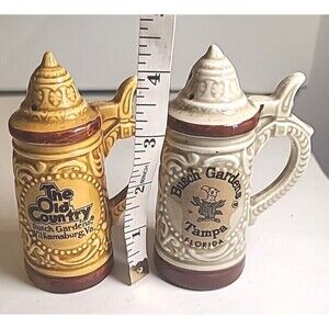 Vintage Busch Gardens Salt and Pepper Shakers Japan Miniature Beer Stein Florida
