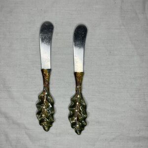 Vintage Butter Spreading Knife Cheese Knife Jewel Stainless Steel Set of 2