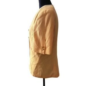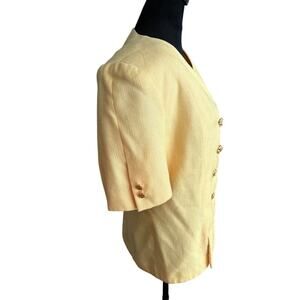 Vintage Butter Yellow Scalloped Button Blazer – Retro Floral-Inspired Size 14