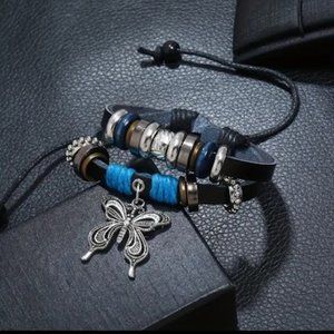Vintage Butterfly Black PU Leather Adjustable Wrap Bracelet Adjustable Length
