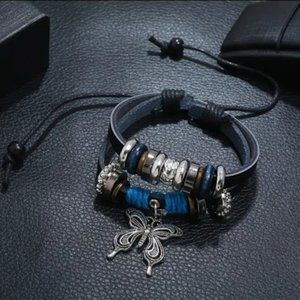 Vintage Butterfly Black PU Leather Adjustable Wrap Bracelet Adjustable length 6.5"-8.5"