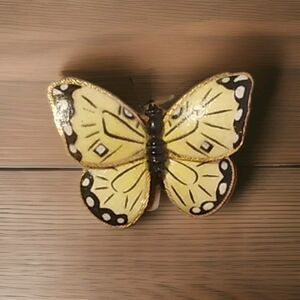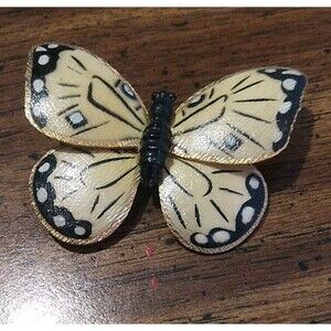 Vintage Butterfly Brooch Pin Yellow Black and Gold Tone Vintage Signed Weiss