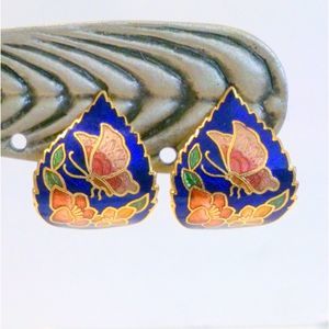 These earrings are a delightful testament to the artistry of vintage jewelry, capturing the essence of a bygone era with their unique design and craftsmanship. Embrace the exquisite beauty and timeless charm of these vintage butterfly cloisonné on cobalt blue background clip-on earrings—a graceful homage to the allure of nature and artistic craftsmanship.