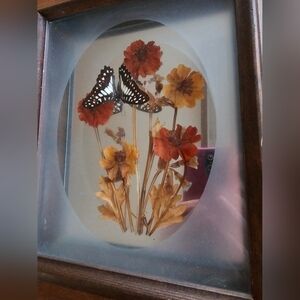 Vintage used taxidermy butterfly and dried flowers frame. Has a mirror on the interior. Some wear due to age, please view all photos.