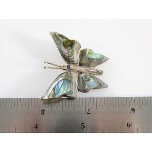 Vintage 1950s Abalone Inlay Butterfly Pin Sterling Silver Taxco Mexico 1 W x 1½ H