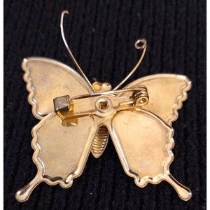 Vintage Butterfly Pin Brooch Enamel Wing Glitter Inlay Gold Tone Design