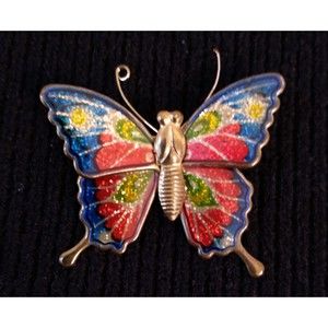 This listing is for a beautiful Vintage Butterfly Pin Brooch Enamel Wing Glitter Inlay Gold Tone Design. one of the butterfly's antennae is stretched out however this item is in good condition. Lightweight 0.10 oz. See pictures as part of description. If you have any questions, feel free to ask. Thank you.