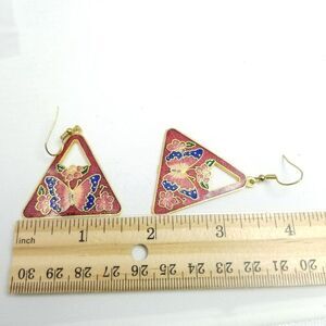 Vintage Butterfly Red Enamel Triangle Dangle Earrings, Colorful 80s 90s style