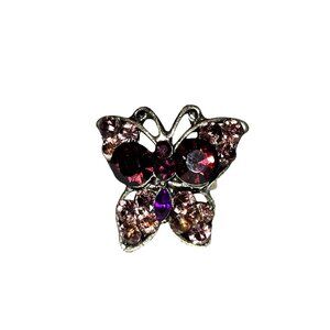 This butterfly ring features a silver-tone band adorned with shimmering pink and purple rhinestones. It's super cute and the Butterfly is on the Large Side