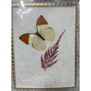 Vintage Butterfly Shadow Box Art Reliance Industries Glass Frame With Gold Detai