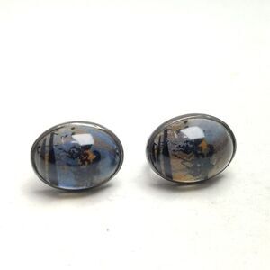 Vintage Butterfly Wing Palm Tree Design Oval Cabochon Clip On Screw Back Earrings