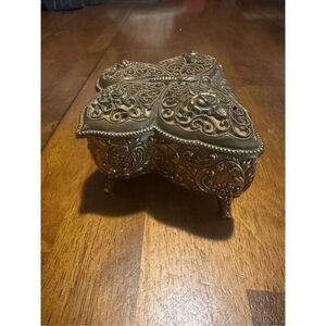 Vintage Butterfly Filligree Metal Music Box Plays Melody of Love Hinged 3.25”