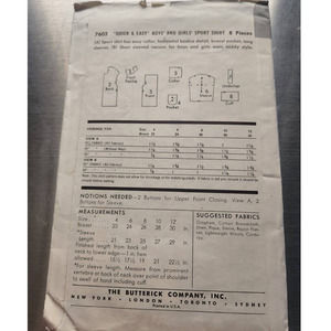 Vintage Butterick 7602 Quick Easy Boys' & Girls' Sport Shirt Breast 23 S…