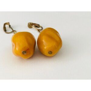 Vintage Butterscotch Bakelite Dangle Nugget Earrings Lever Back Mid Century MCM
