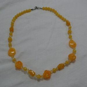 Lovely butterscotch swirly beaded necklace with silver tone clasp. In excellent condition, not sure of age.