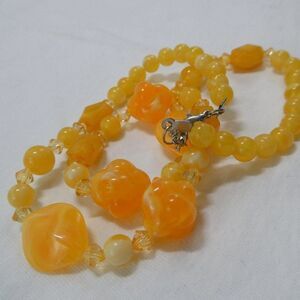 Vintage Butterscotch Beaded Necklace Floral Swirl