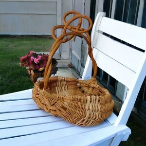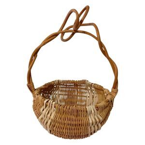 Vintage Buttocks Basket Twisted Willow Handle Eye Of God Handwoven Farmhouse