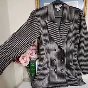 Vintage Button Black Blazer Jacket Rayon Poly Blend Retro La Belle Rockabilly