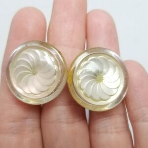 Vintage Button Conversion Clip On Earrings, Spiral Pearlescent Round Design