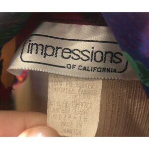 This floral vintage blouse by Impressions of California is a vibrant addition to your wardrobe. With long sleeves and a collared neckline, it features a button-up closure (This item is missing one button!!) and is perfect for business occasions. The ivory color and floral pattern make it a stylish piece, while the polyester blend material ensures it is durable.